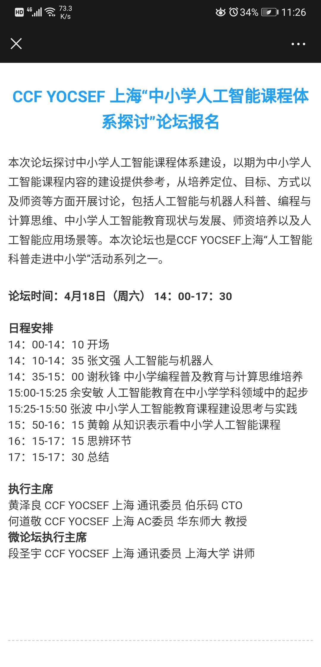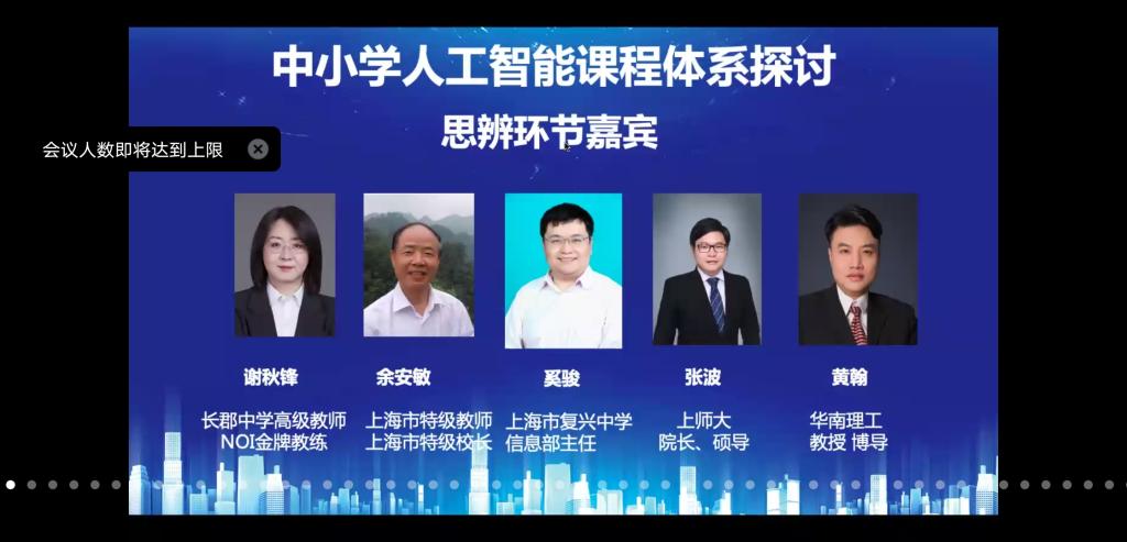 2020年4月18日,由中国计算机学会青年计算机科技论坛主办的“中国中小学人工智能课程体系研讨”会议通过网络在线举行。该会议主要探讨中小学人工智能课程体系建设、培养定位、团队培训、机器人科普、编程与计算思维培养等问题。在会议上作报告的有复旦大学智能机器人研究院副经理张文强教授、CCF杰出演讲者、中学高级教师谢秋锋老师等多位从事人工智能研究与人工智能基础教育的专家学者。公司组织人工智能与教育信息技术科研团队、人工智能本科课程团队参加了该会议。通过与参会专家的交流,进一步明确了公司面向公司产品的人工智能科研特色以及涵盖中小学教育的人工智能专业办学特色。