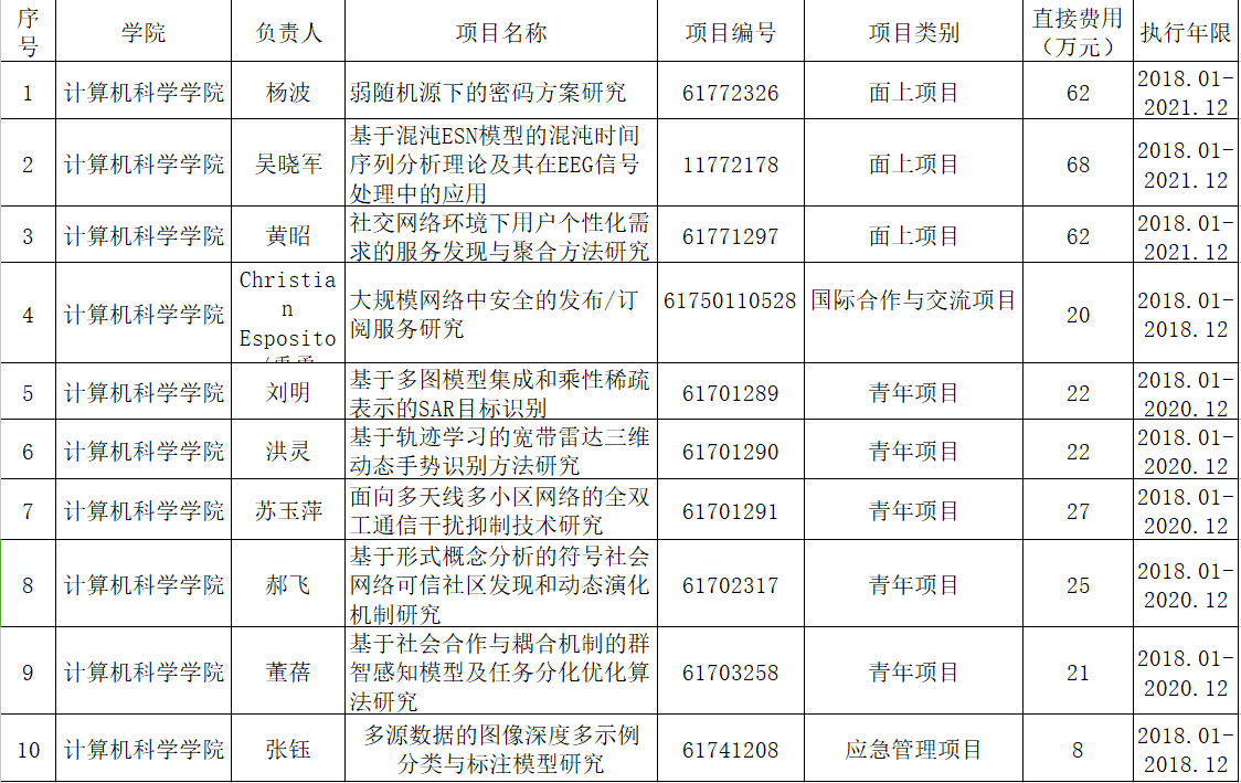 附:公司2017年国家自然科学基金项目立项清单: