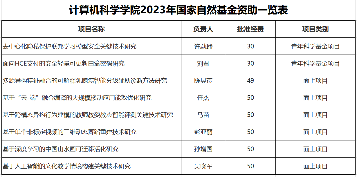 近日,国家自然科学基金委员会公布了2023年度国家自然科学基金申请项目评审结果,公司8个项目获得资助,资助总经费359万元,包括青年科学基金项目2项,面上项目6项。