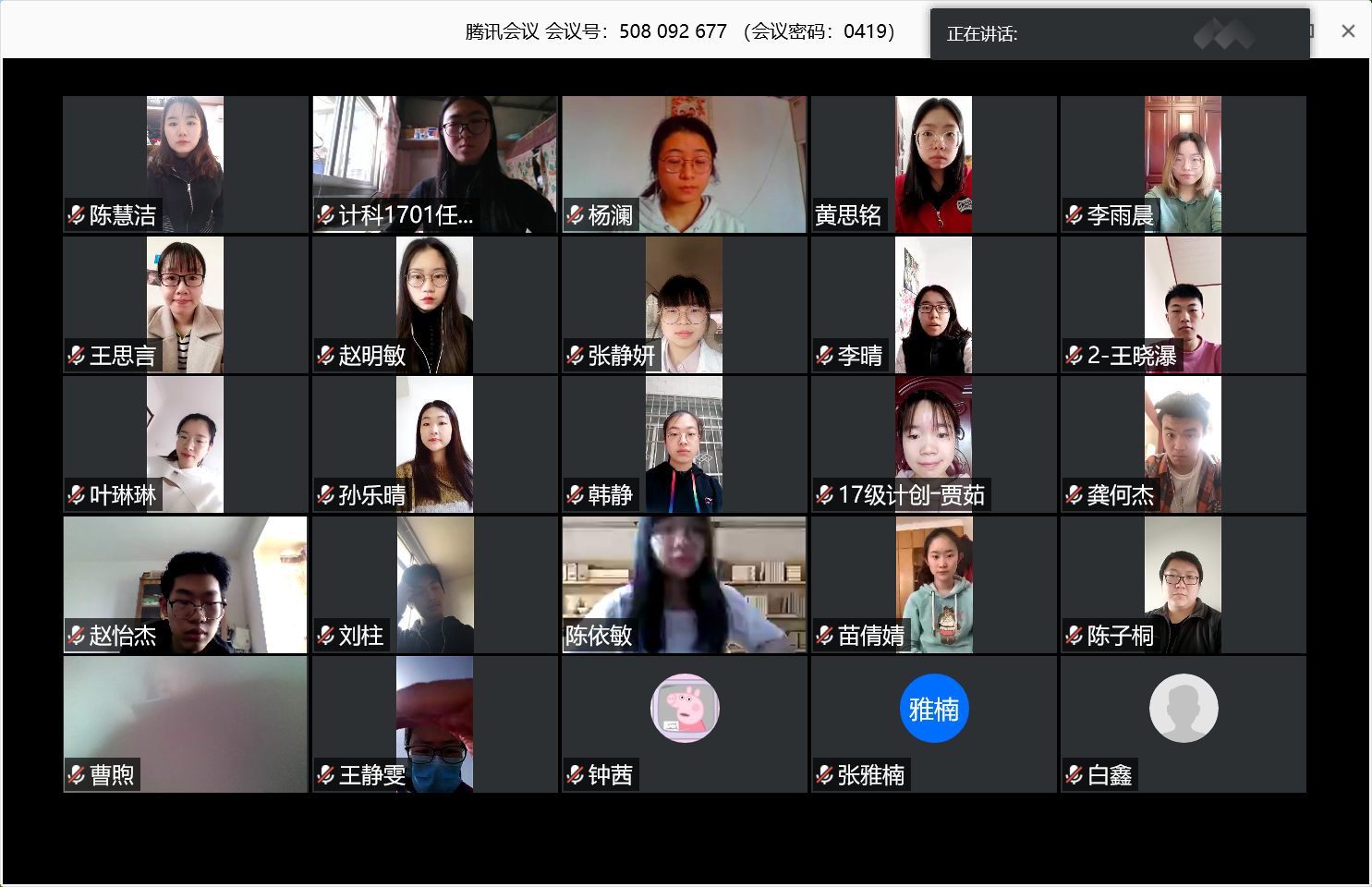 在最后的总结发言中,陈应权老师谈到,要珍惜别人付出辛苦劳动甚至是生命为我们创造的美好生活和疫情防控良好局面,要用自己的实际行动去捍卫来之不易的成果;要时刻铭记包括这次疫情的重大事件中为大家舍小家的平凡英雄们,不忘来路、始知归处;要透过我们所遇见的每一次灾难去反思,反思我们的言行举止是否符合我们的党员身份。王楠老师首先向同志简单地介绍了自己自疫情以来在公司疫情防控工作指挥部的工作。她表示,从国家层面来看,这次疫情大考彰显了社会主义制度的优越性,体现了人类命运共同体这一观点的正确性,是一场生动的爱国主义教育;从社会层面来看,尽管存在极少部分不和谐声音,但绝大多数中国人都主动担起社会责任,相信科学、相信权威,不信谣、不传谣;从个人层面来看,无论是奔赴一线还是居家抗疫,都是在为我国疫情防控工作贡献自己的力量。最后,她希望同学们在家学习生活之余,不忘积极参加劳动,锻炼身体,以最好的身体和心态迎接生活中的每一天。