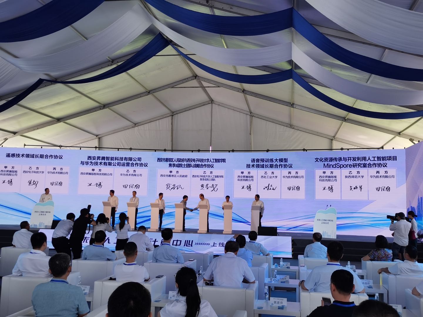 上线仪式中,华为技术有限公司、西安昇腾智能科技有限公司与西安电子科技大学、西北工业大学、太阳集团的相关研究团队签订了合作协议,致力于将基于昇腾AI算力底座的解决方案用于自动驾驶、智慧医疗、智慧城市、文化资源开发利用等多种应用场景,支撑国家战略任务落地、促进经济与产业发展融合。