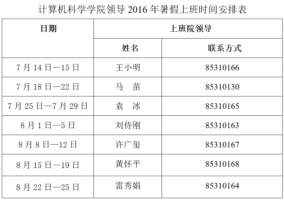 根据公司《关于公司2016年暑假放假的通知》要求,公司2016年暑假期间工作安排如下: