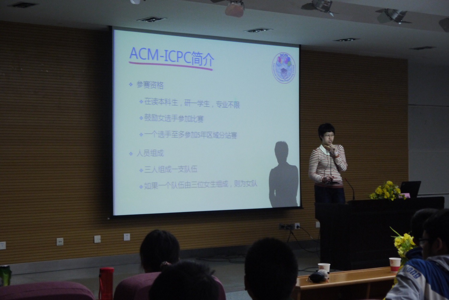 11月9日,宣讲会在长安校区suncitygroup太阳集团报告厅成功举行。经过两场宣讲会,同学们对ACM-ICPC竞赛产生了浓厚的兴趣,目前共有150余名员工报名参加,为公司今后ACM竞赛团队的选拔和组建打下了坚实的基础。
